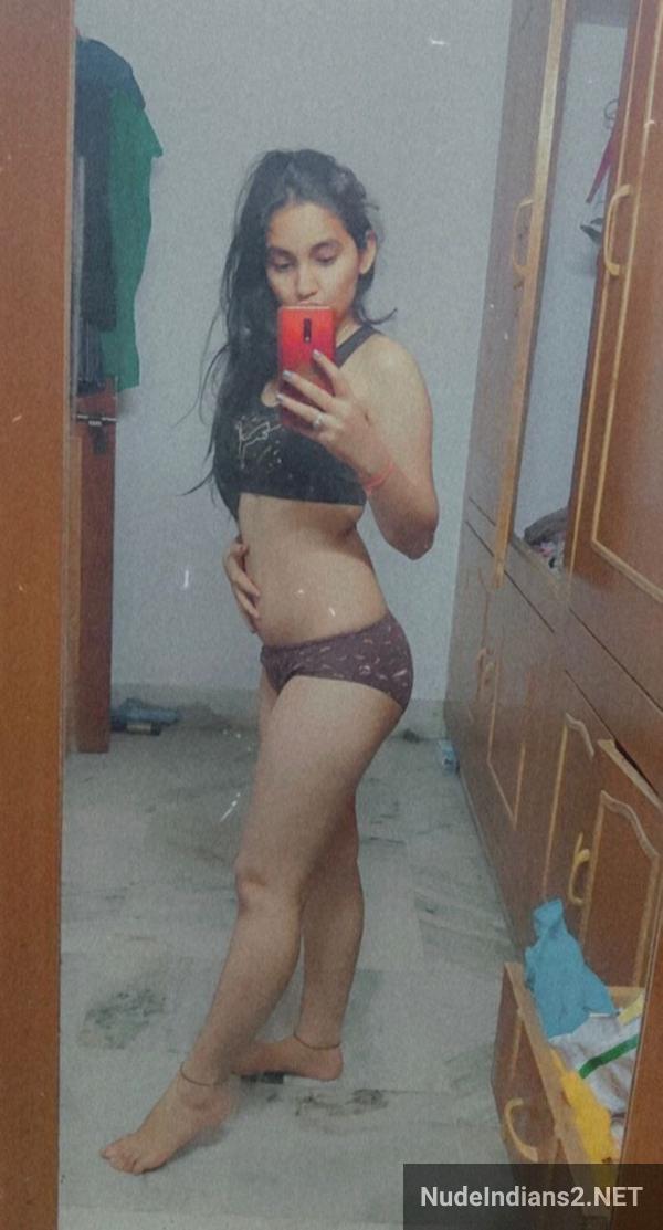Of course, you guys are amazed seeing Jahnavi’s slim figure. I wanted to know if you masturbated more than 4 times within an hour. Is she really that hot? I liked the way she flaunts her hairy pussy and shows that curvy ass from a nice angle. The tightness of her bra panty really makes me wanna grab my dick. Enjoy these amateur slim Telugu girl desi nude selfie solo pics.